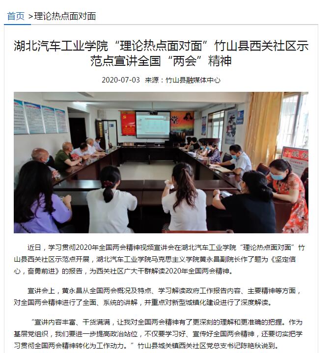 【湖北理论信息网】湖北汽车工业学院“理论热点面对面”竹山县西关社区示范点宣讲全国“两会”精神