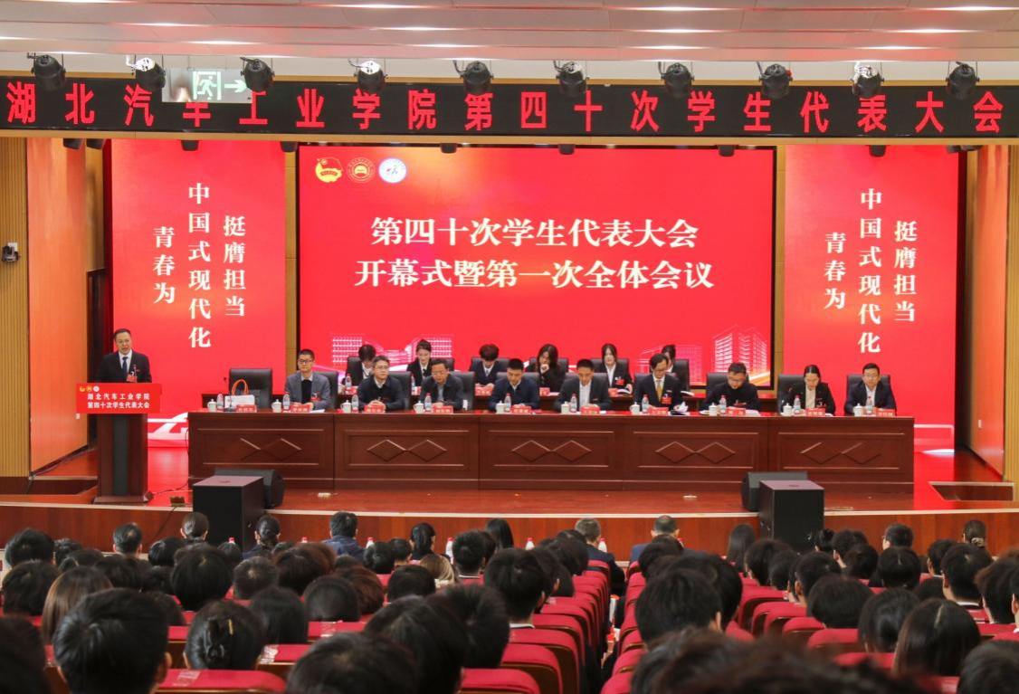 本网讯(文 高歌/图 青年传媒中心)11月3日,我校第四十次学生代表大会在产教大楼四楼报告厅举行。校党委常委、党政办公室主任王文山,十堰市少先队总辅导员程璐璐,学校相关职能部门负责人、二级学院党委副书记及全体学生代表参会。